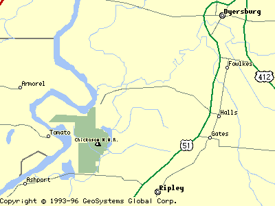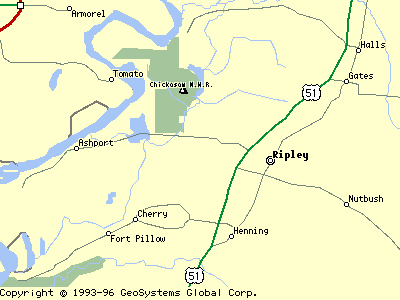 Menglewood is on Rt 104 (unlabeled in this map) that goes west from Dyersburg (just before it crosses the small river). Ashport and Riply are to the south.